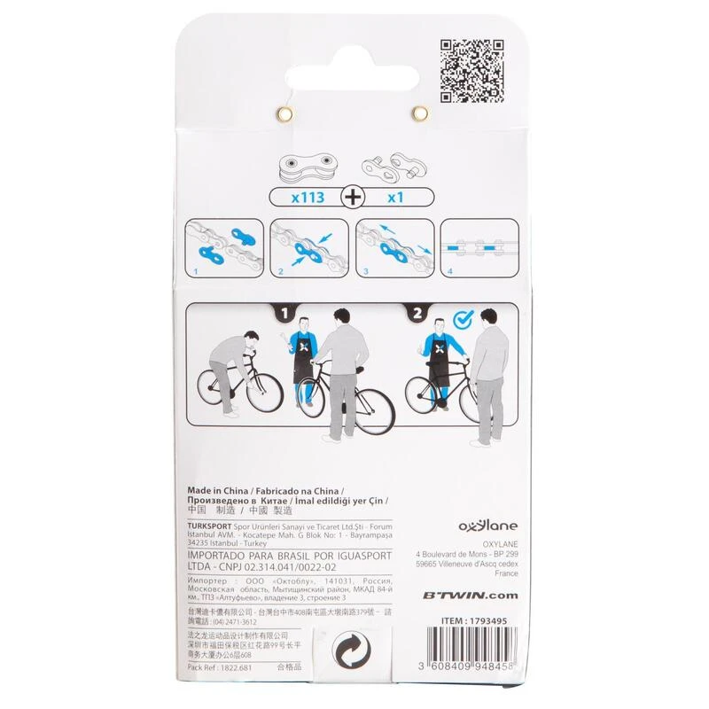 Montage facile en adaptant la longueur de la chaîne avec un dérive chaîne disponible sur Decathlon.fr (ref: 8351521)