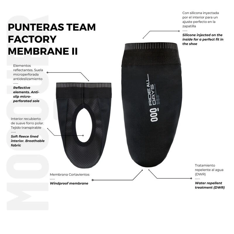 Embouts de cyclisme pour l’hiver et les climats froids. Coupe-vent, thermiques et avec un tissu DWR repoussant l’eau. FabriquĂ©s en Italie. Avec des Ă©lĂ©ments rĂ©flĂ©chissants et une semelle en silicone